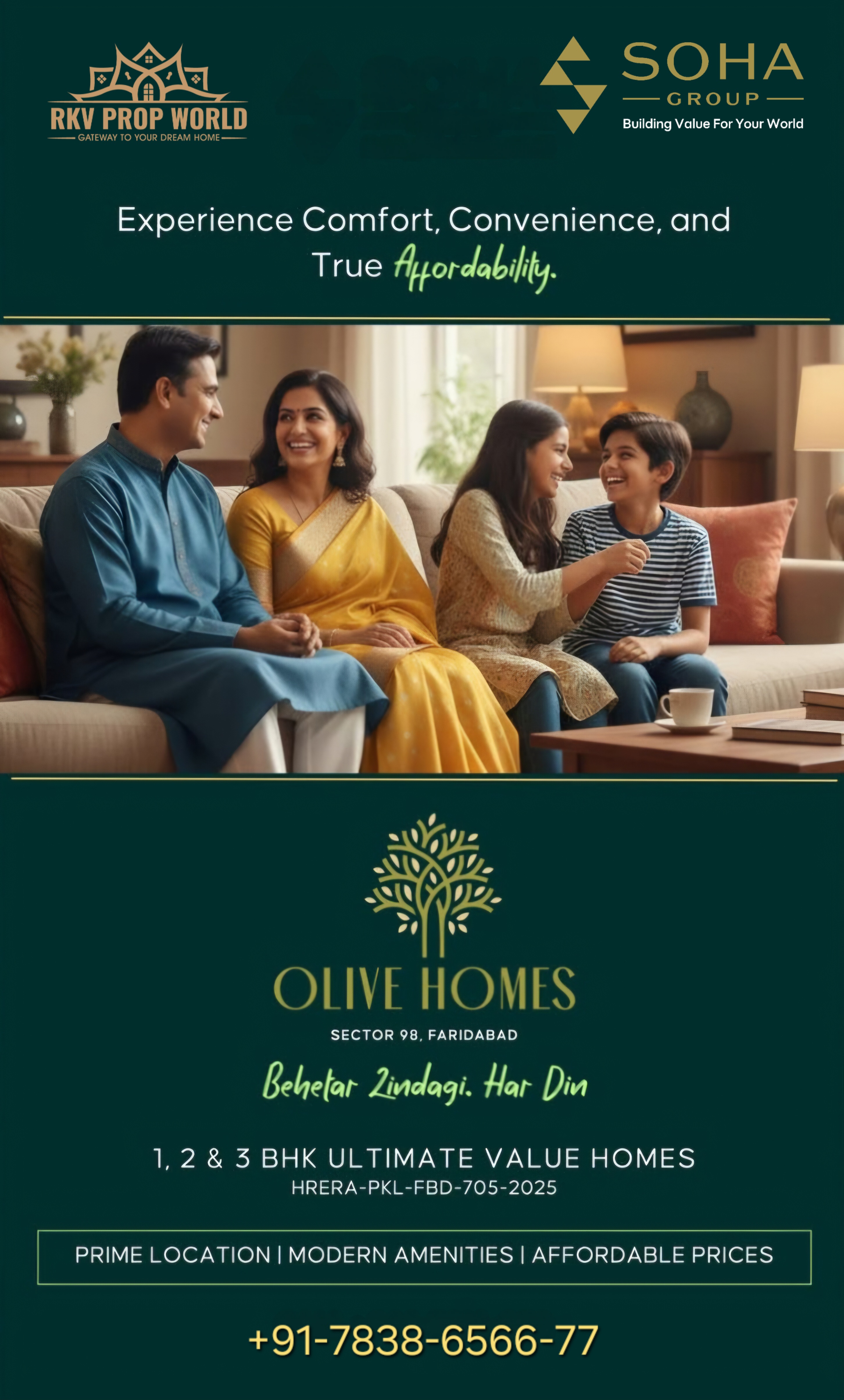 OLIVE HOMES By SOHA GROUP, Affordable Housing Flats Coming Soon at Sector 98, Faridabad RERA Registered 1BHK, 2BHK & 3BHK Flats Stilt + 14 Floors 4 Flats on each Floors 2 ...