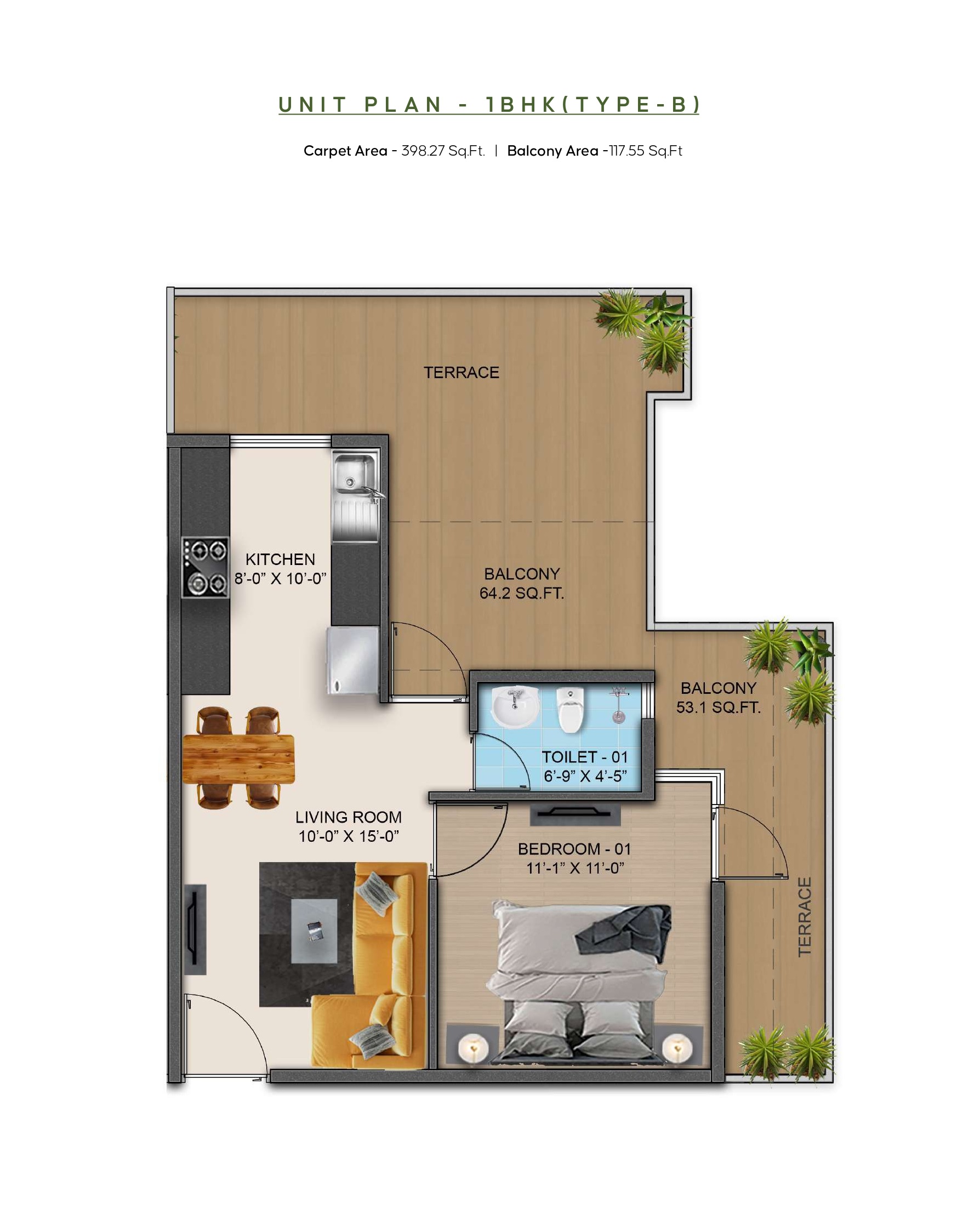 - Area Size : 1100 Sq. Ft. sq ft
