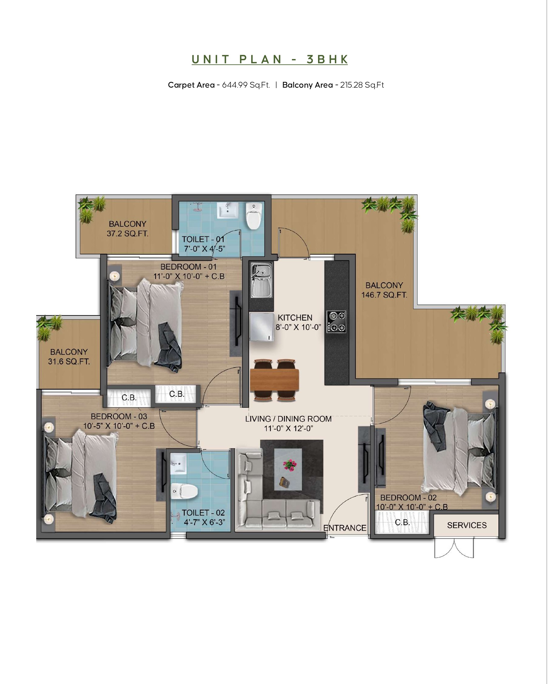 - 3 Beds